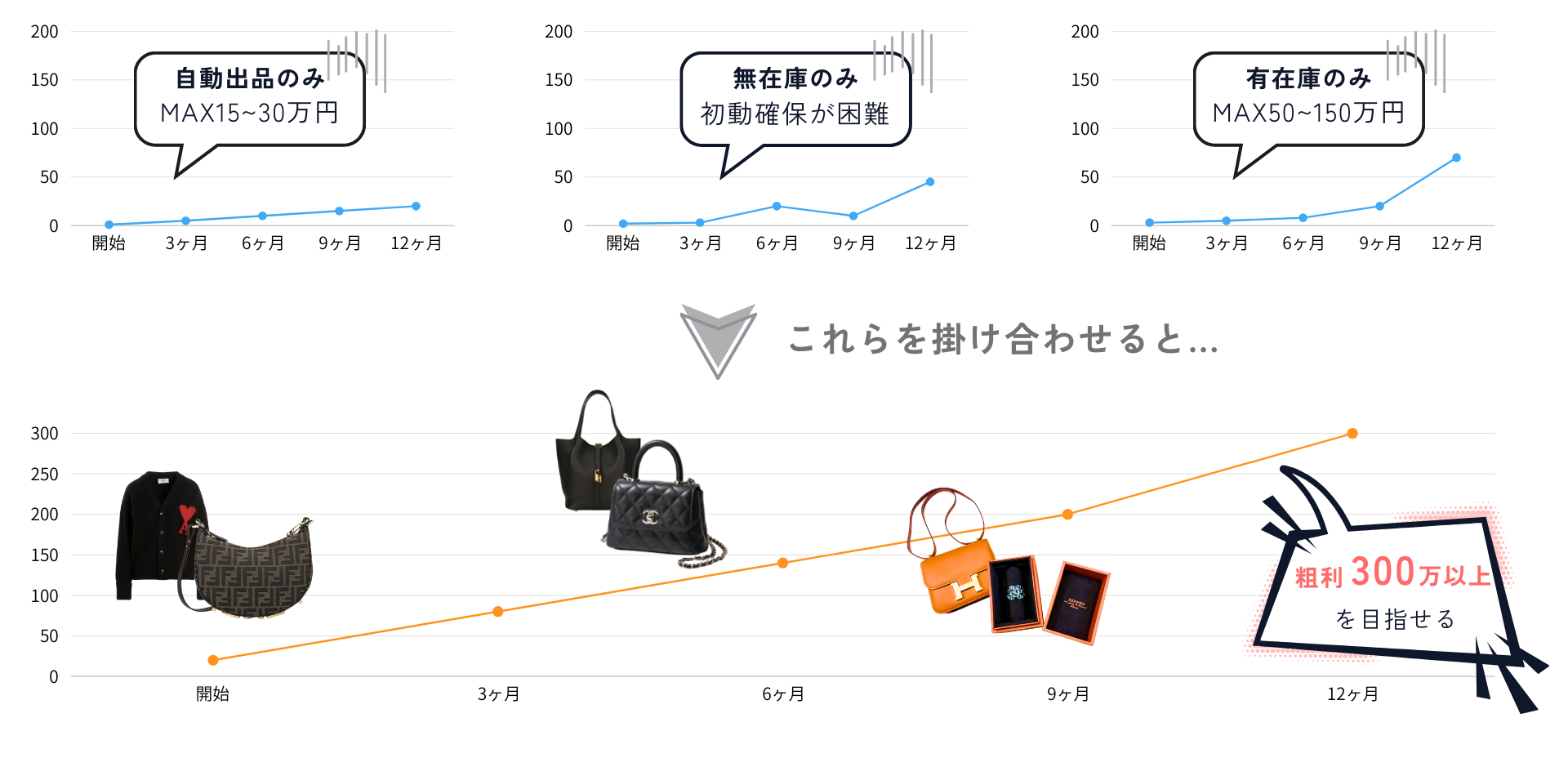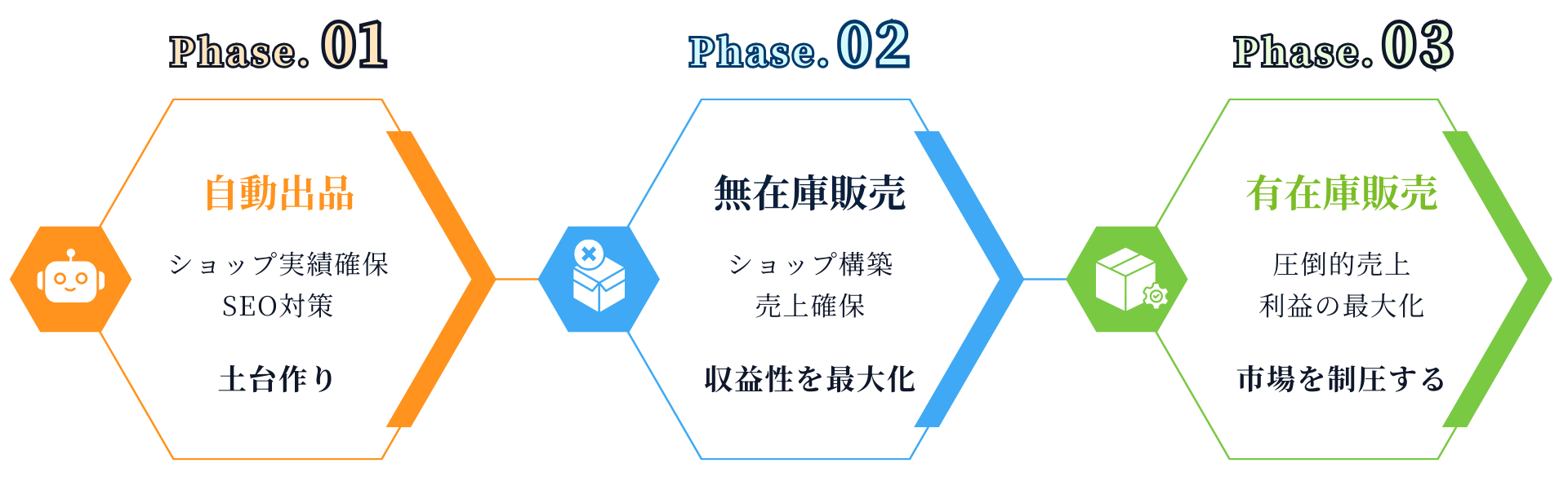 リスク最小化・リターン最大化し、運用を効率化する物販モデルを提供いたします。